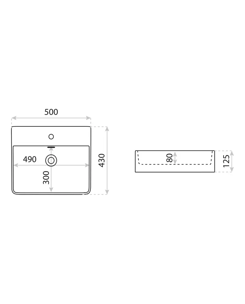 BEMESSUNG IN MM (LÄNGE X BREITE X HÖHE): 500 X 430 X 125