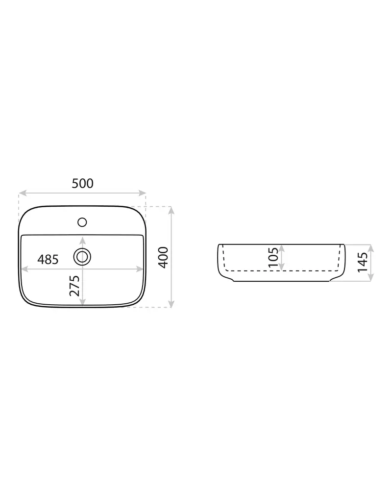BEMESSUNG IN MM (LÄNGE X BREITE X HÖHE): 500 X 400 X 145