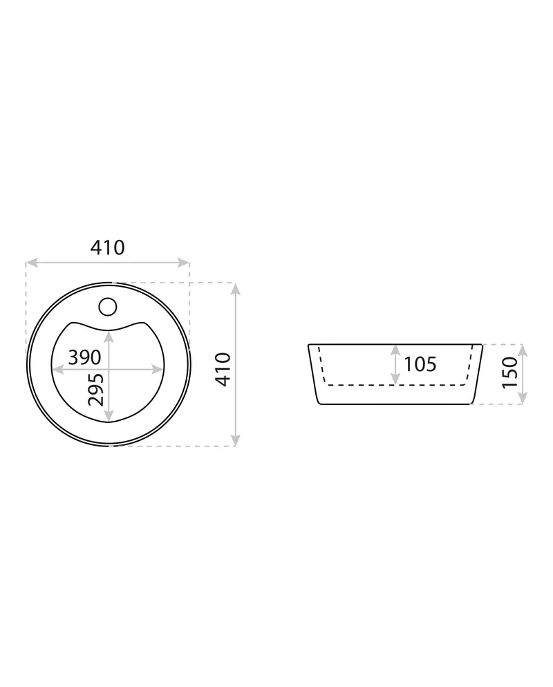 BEMESSUNG IN MM (LÄNGE X BREITE X HÖHE): 410 X 410 X 150
