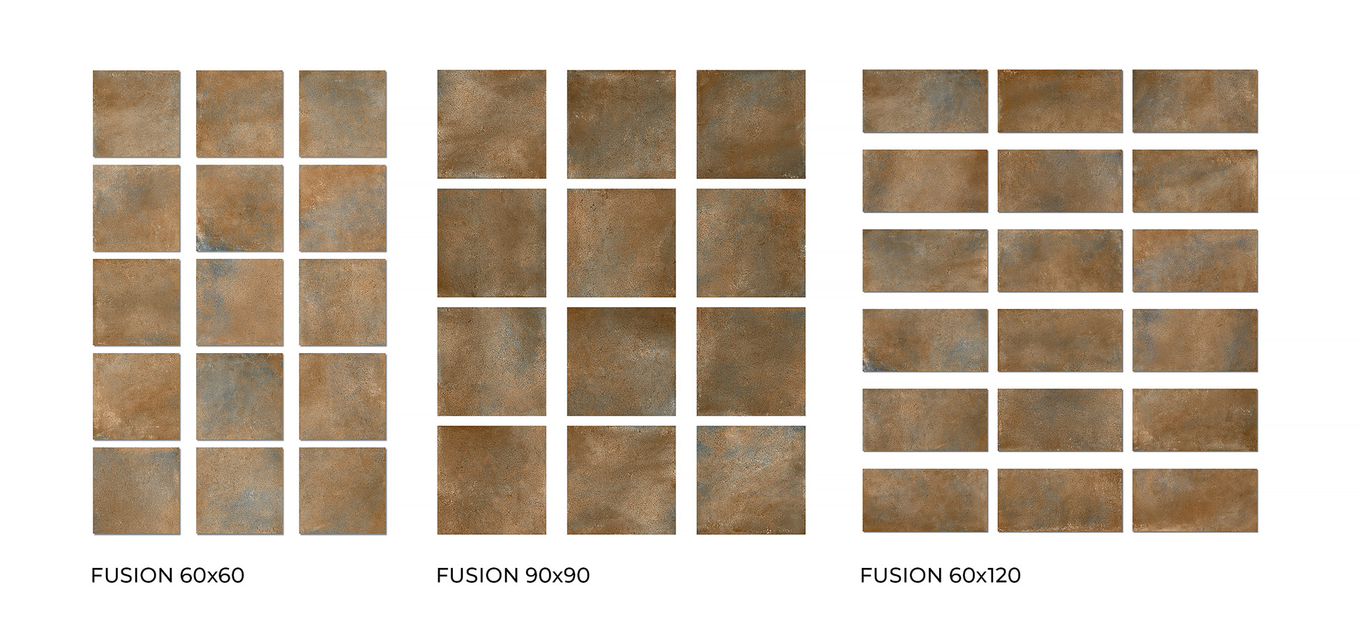 13. Format: 600x600x9,6 mm (FUSION 60×60), 900x900x10,5 mm (FUSION 90×90), 600x1200x10,2 mm (FUSION 60×120)