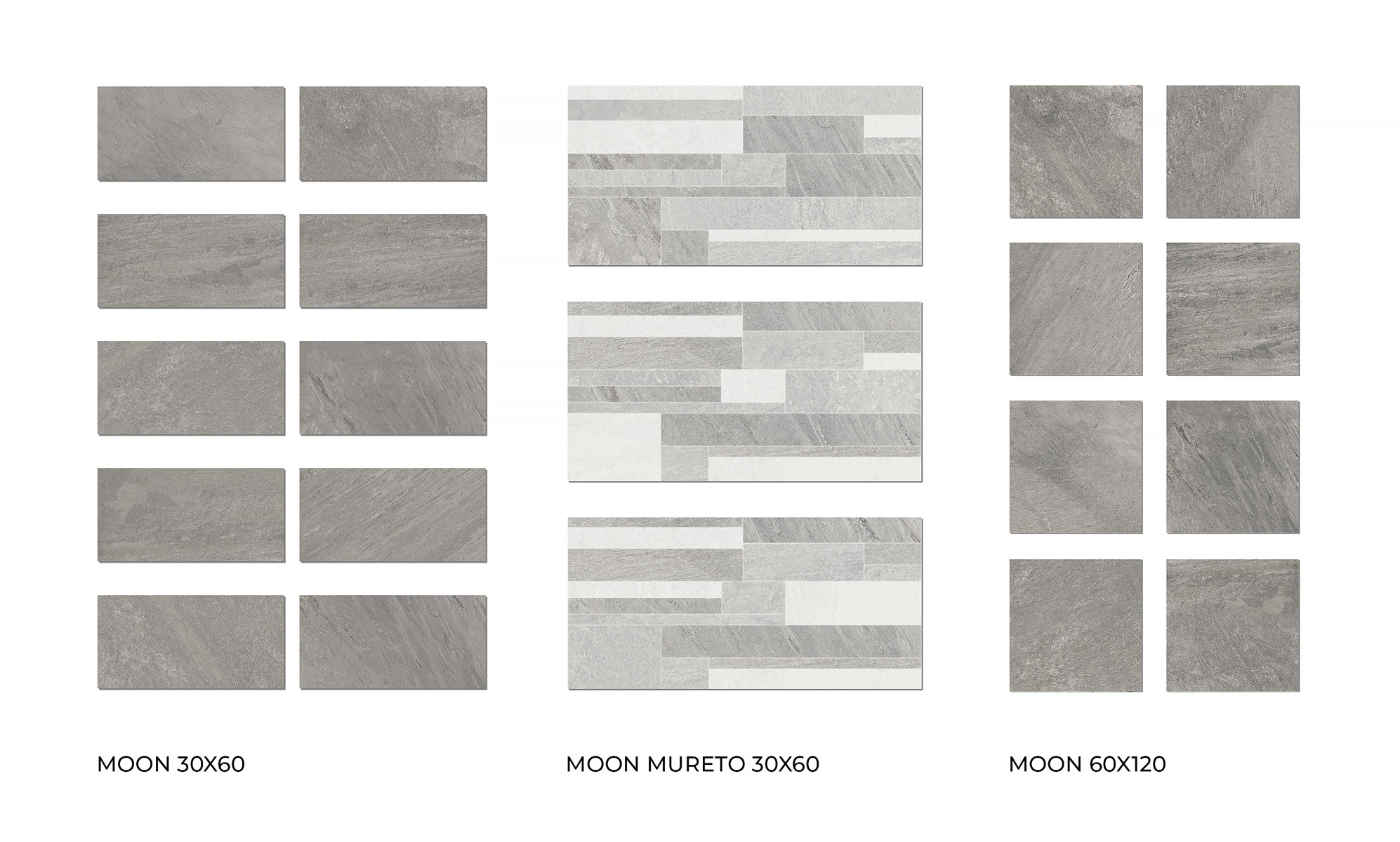3. Format: 300x600x8 mm (MOON MURETO MIX 30×60), 600x600x9 mm (MOON 60×60), 300x600x8 mm (MOON 30×60)