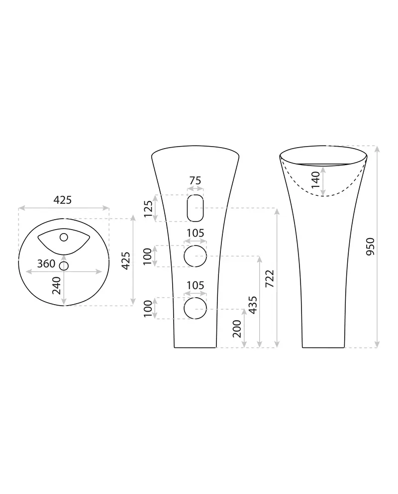BEMESSUNG IN MM (LÄNGE X BREITE X HÖHE): 425 X 425 X 950