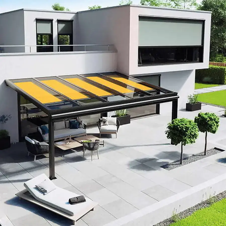 Modernes Terrassendach mit klarem Design und vielfältigen Gestaltungsmöglichkeiten