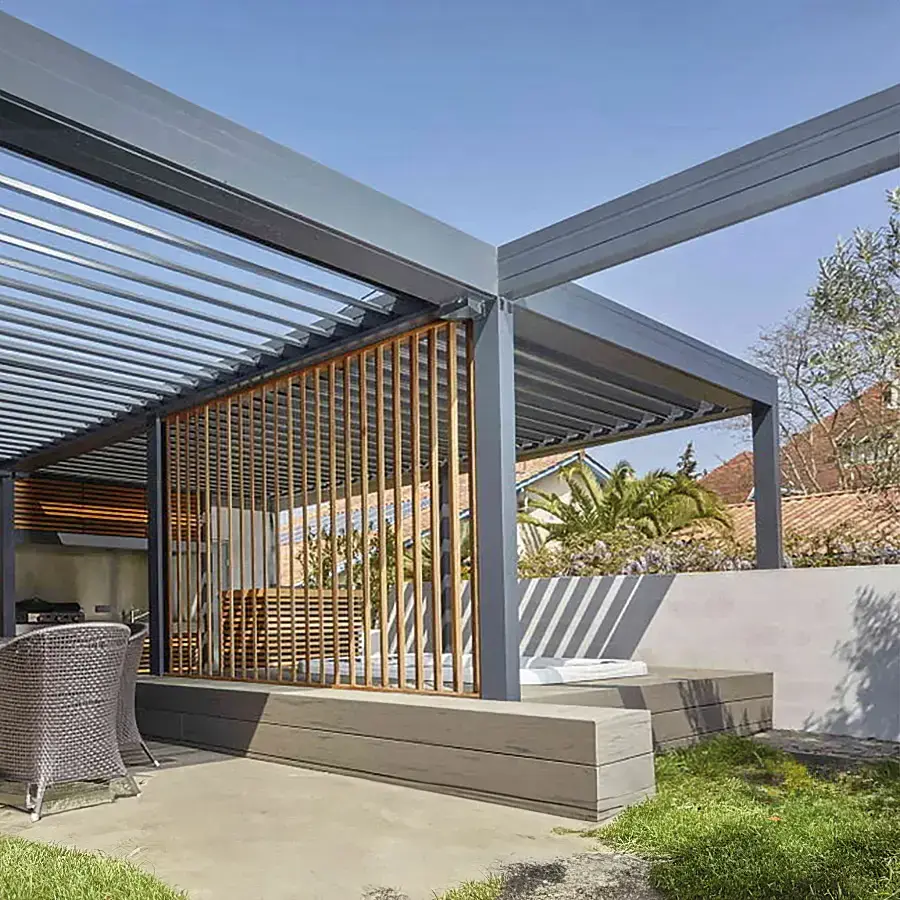 Ob rotierende oder aufschiebbare Lamellen – wir passen uns Ihren Wünschen an und bauen Ihnen die Pergola Ihrer Träume! Die bioklimatische Architektur garantiert ein natürliches Komfortambiente zu jeder Jahreszeit. Die Marquises-Pergola zeichnet sich durch ein formschönes Design und eine innovative Konstruktionsweise aus. Verstellbare Lamellen ermöglichen eine umfassende Kontrolle des gewünschten Lichteinfalls. Es besteht die Möglichkeit, auch mehrere Module miteinander zu kombinieren.