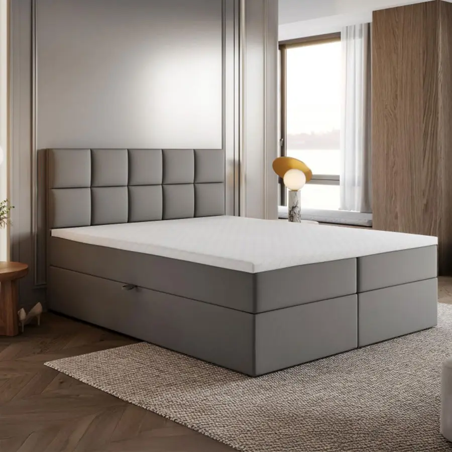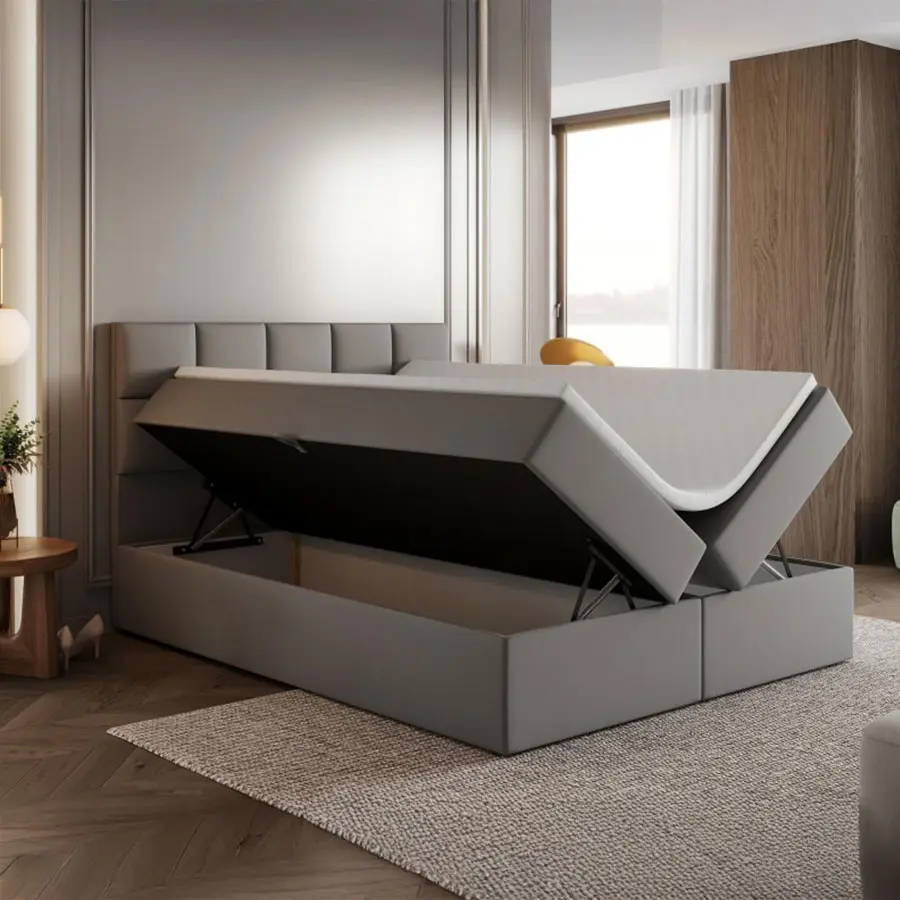 Boxspringbett Bali Grau – mit Stauraum & H3-Bonellmatratze